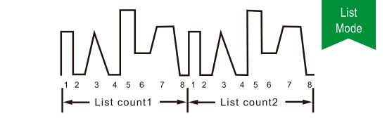 Регенеративная электронная нагрузка постоянного тока серии IT8000 обеспечивает режим списка, он может завершить сложный произвольный режим изменения тока точно и быстро, и может синхронизироваться с внутренними или внешними сигналами для завершения многоуровневого испытания точности нагрузки, что значительно экономит затраты для клиентов. Редактируя значение шага, ширину импульса и наклон каждого шага, IT8000 может генерировать различные сложные последовательности и помочь пользователям завершить различные испытания формы волны нагрузки. В режиме CC серия IT8000 может устанавливать скорость нарастания и спада.