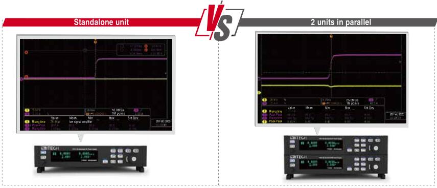 IT-M3400 поддерживает несколько параллельно подключенных устройств одной модели для создания системы с высоким током и высокой мощностью. Пользователи могут подключить параллельно максимум 16 приборов в режиме "ведущий-ведомый", чтобы удовлетворить различные требования к тестированию.