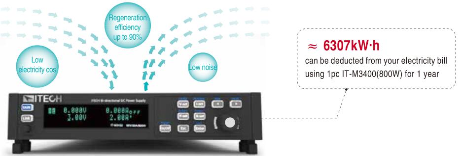 IT-M3400 поддерживает функцию рекуперации энергии, эффективность которой достигает 90%, что позволяет экономить как на электроэнергии, так и на системе охлаждения, создавать малошумную среду тестирования.