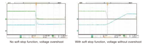 • Мягкий старт и мягкий стоп предотвращают колебания напряжения при включении/выключении