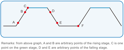 Динамический режим и режим списка серии IT8900A/E могут быть выполнены в режиме CC. Редактируя ширину шага и наклон каждого шага, можно генерировать различные сложные последовательности, позволяя пользователю выполнять различные тесты с нагрузочными осциллограммами. В режиме CC IT8900A/E может задавать скорость нарастания и спада.