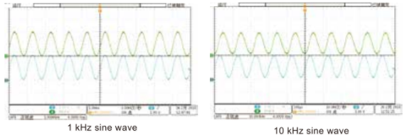 На правом рисунке показан входной аналоговый интерфейс синусоидального сигнала 0-4,2 В, который управляет динамической нагрузкой IT8900A 0-100A. Амплитуда и уменьшение фазы сигнала ниже 10 кГц выше. Он может быть применен для тестирования батарей всех видов сложных форм волны, а также может быть использован для анализа импеданса топливных элементов. При использовании для распараллеливания нагрузки мощность расширения, аналоговый интерфейс может быть использован для параллельного дифференциального аналогового интерфейса управления, который является более стабильным и надежным, чем традиционный независимый интерфейс LAN параллельной связи.