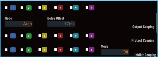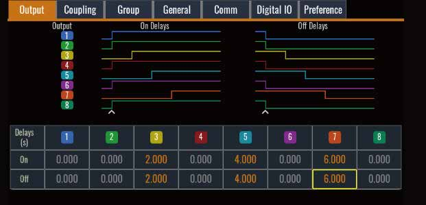 Функция задержки включения/выключения для каждого выхода позволяет сериализовать включение/выключение выхода.