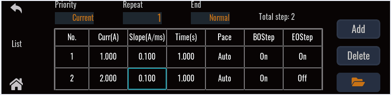 Редактируя напряжение, ток, ширину импульса и наклон каждого шага, можно генерировать различные сложные последовательности, помогать выполнять различные нагрузочные тесты и импортировать или экспортировать файлы.