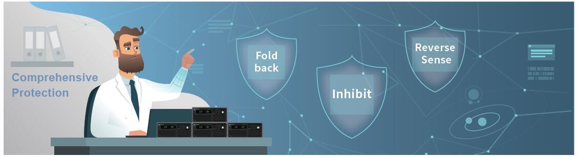 Для дальнейшего повышения надежности и безопасности испытаний изделий серия IT-M3140 предлагает девять режимов защиты. В традиционных режимах защиты от превышения / понижения напряжения, превышения / понижения тока, превышения мощности на основе дополнительных функций Fold back, Inhibit и Sense reverse connection protection, так что не только можно эффективно уменьшить мгновенный перескок переключения режима питания, но и избежать неправильного подключения или утечки, вызванной аномалиями теста. Функция запрета/блокировки выхода Inhibit делает испытания более безопасными и надежными.