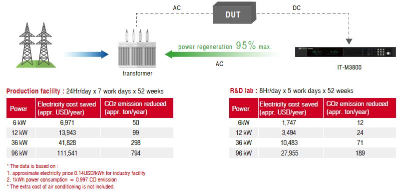 Благодаря функции рекуперации энергии IT-M3800 может возвращать до 95% энергии вместо того, чтобы потреблять ее в виде тепла. Это не только экономит ваши затраты на электроэнергию, HVAC и охлаждающую инфраструктуру, но и помогает снизить выбросы углекислого газа и воздействие на окружающую среду. Кроме того, IT-M3800 имеет функцию автоматического обнаружения сети, которая может определять фазовое напряжение и частоту в режиме реального времени и синхронизируется с сетью, чтобы сделать регенерацию энергии автоматической и безопасной.